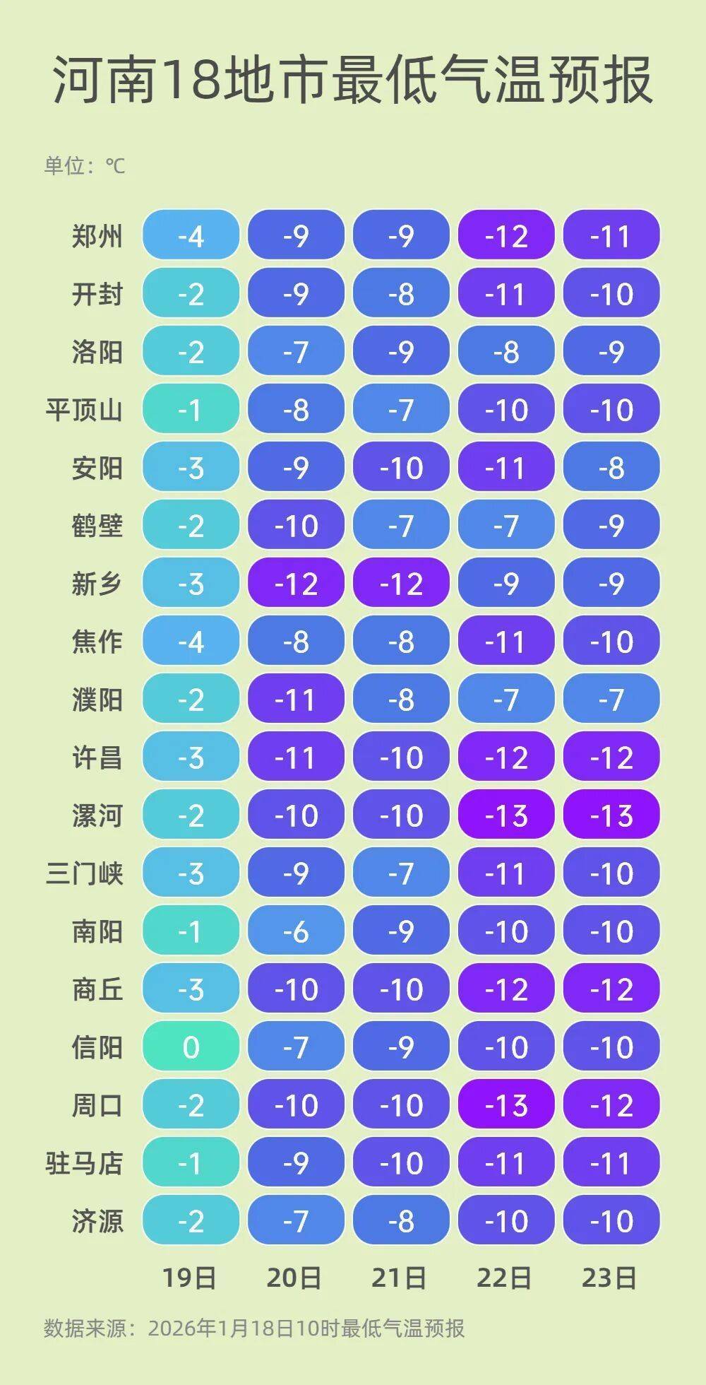 来源:河南省气象台2026年1月18日12时预报